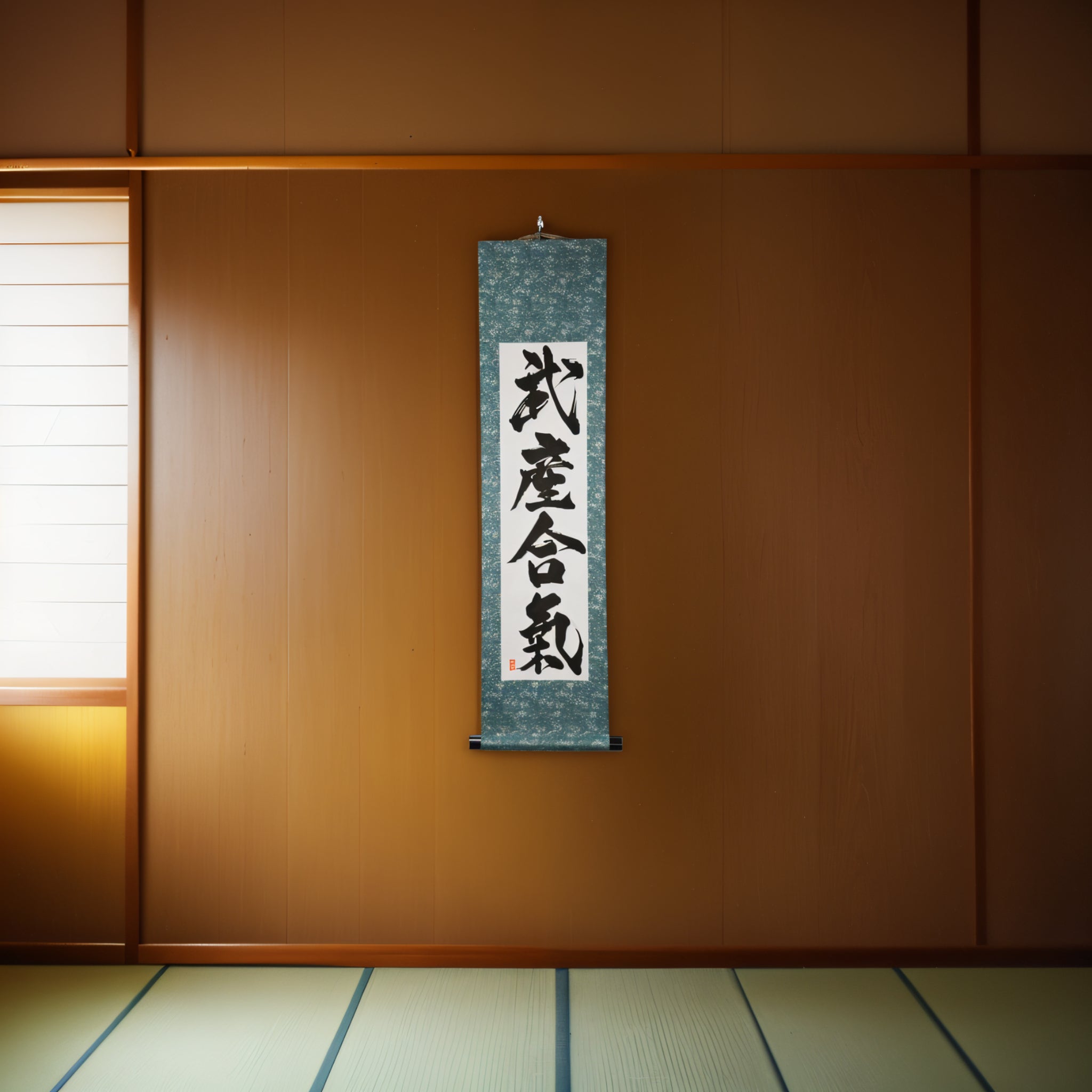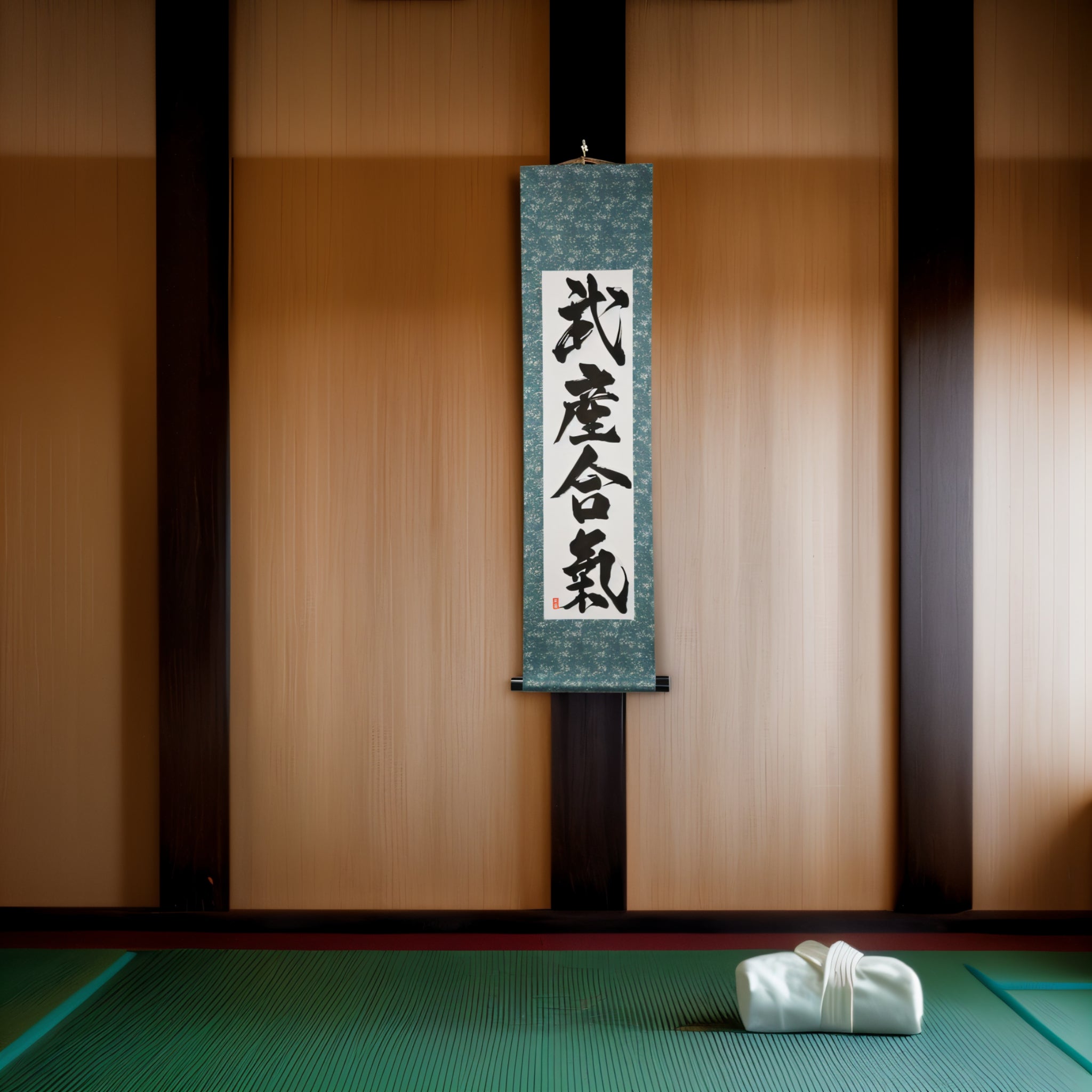Diese Rolle dient als spiritueller Anker und Inspiration — eine Erinnerung daran, dass der ultimative Weg des Aikido nicht nur in der Beherrschung der Form liegt, sondern in der Geburt der Harmonie durch den kämpferischen Geist.
